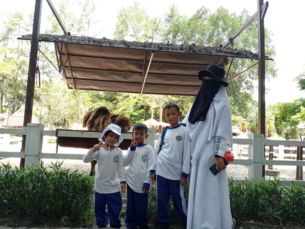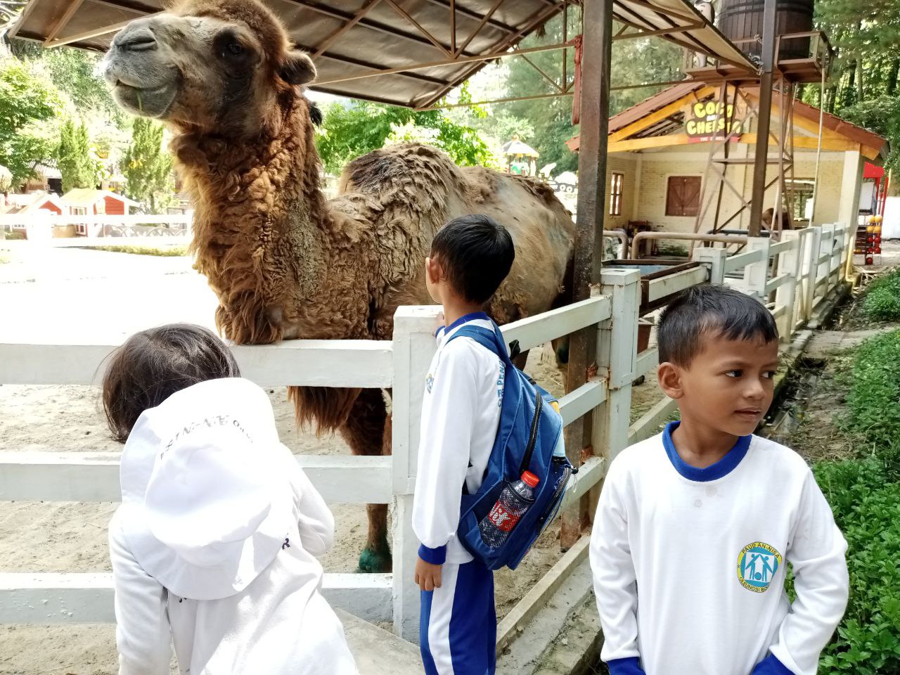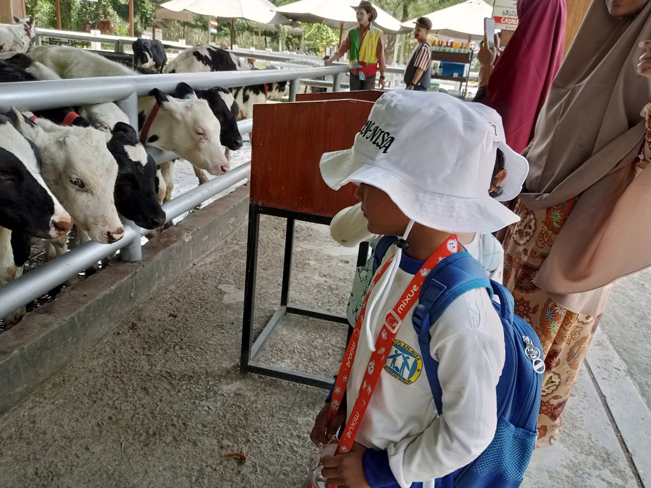 "Hari ini paket lengkap untuk anak-anak. Tadi pagi belajar jadi 'haji kecil', siangnya belajar menyayangi makhluk ciptaan Allah di peternakan," ujar salah satu guru pendamping dari PAUD An-Nisa.