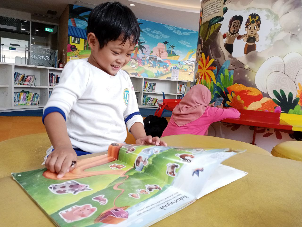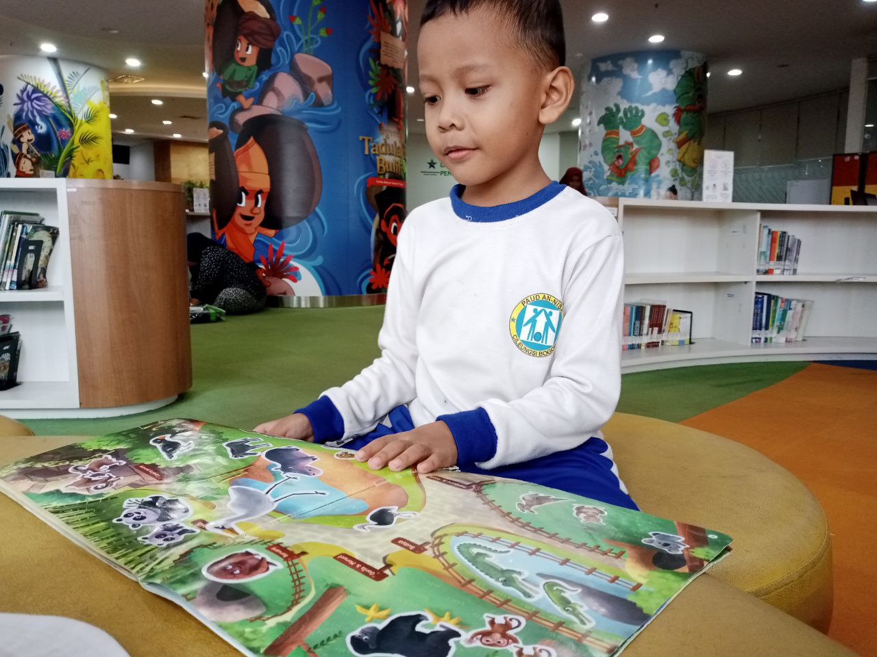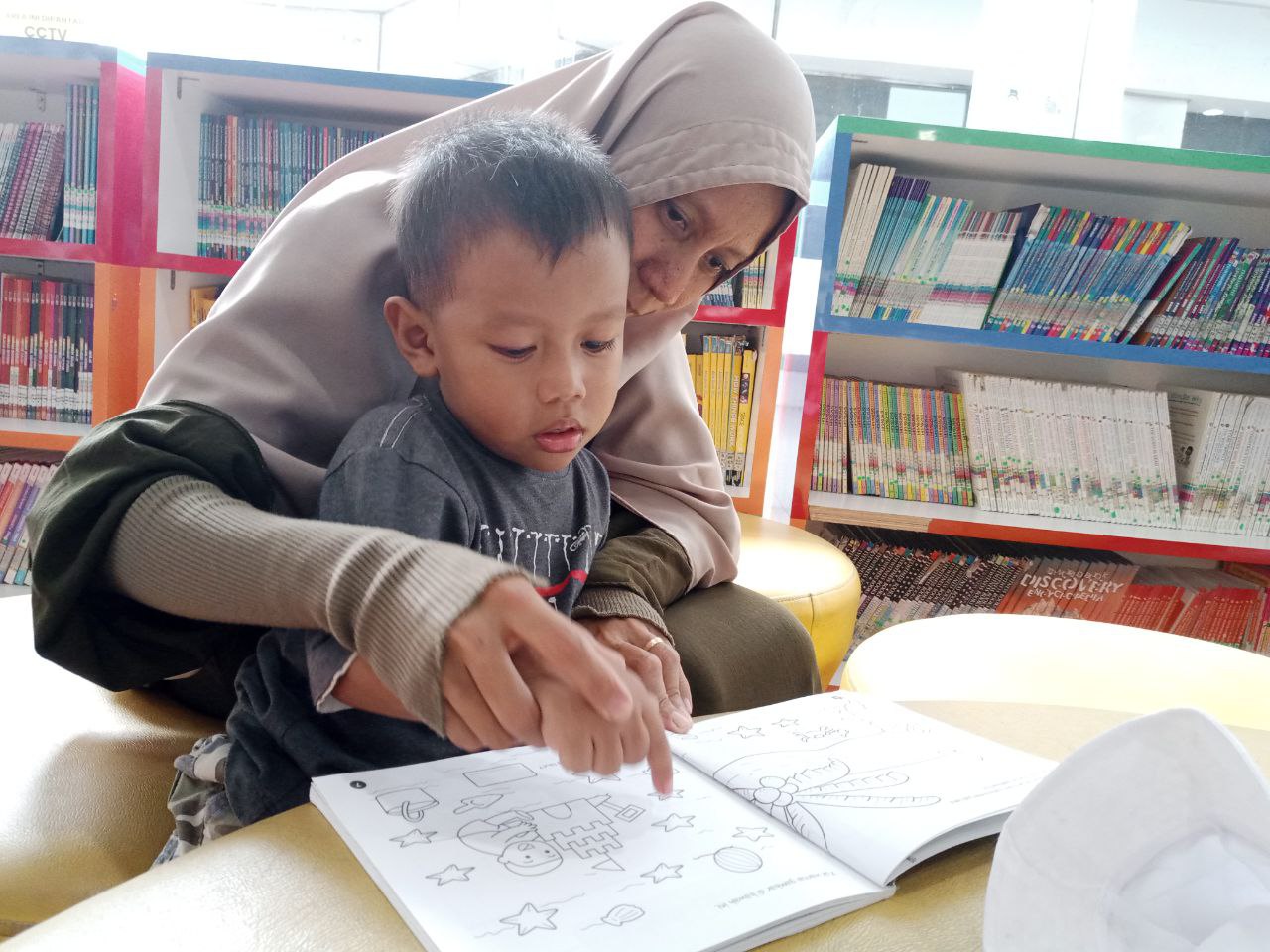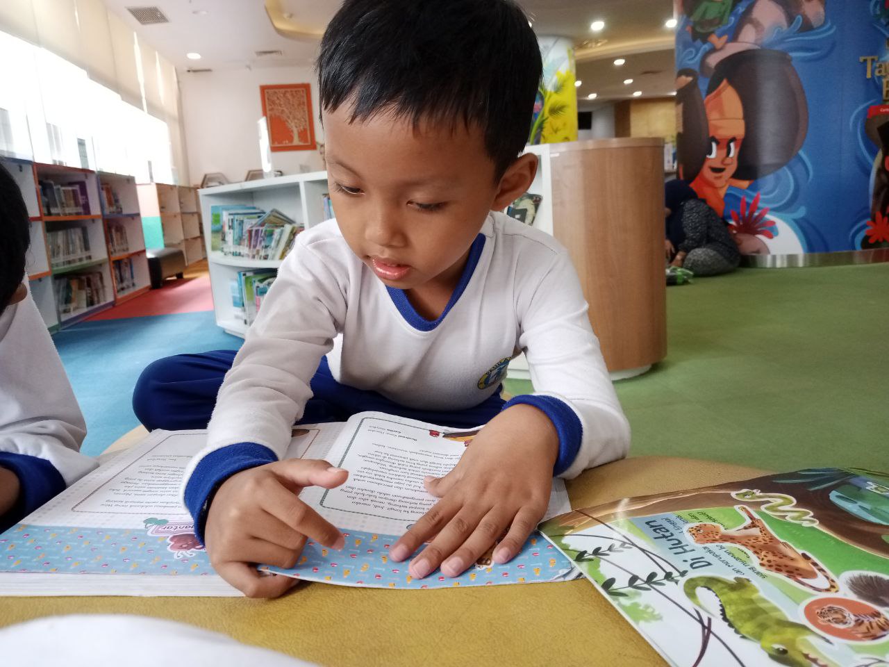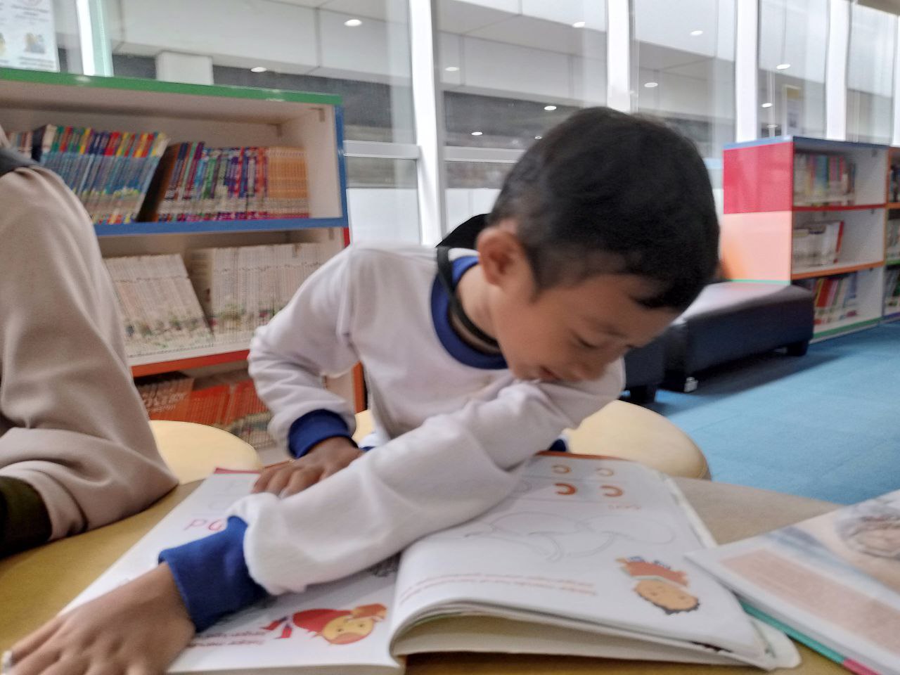 Di lantai layanan anak, antusiasme mencapai puncaknya. Anak-anak tidak hanya melihat tumpukan buku, tetapi seolah masuk ke dalam dunia imajinasi. Ada yang berlari kecil menuju rak buku bergambar hewan, ada yang duduk bersila dengan mata berbinar mendengarkan gurunya bercerita, dan ada pula yang asyik mencoba fasilitas permainan edukatif. Keceriaan ini membuktikan bahwa buku bisa menjadi teman bermain yang sangat menyenangkan bagi mereka.